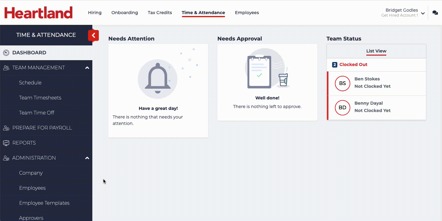 - Login to the Heartland Time page.